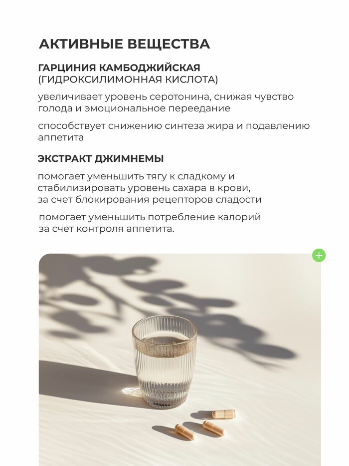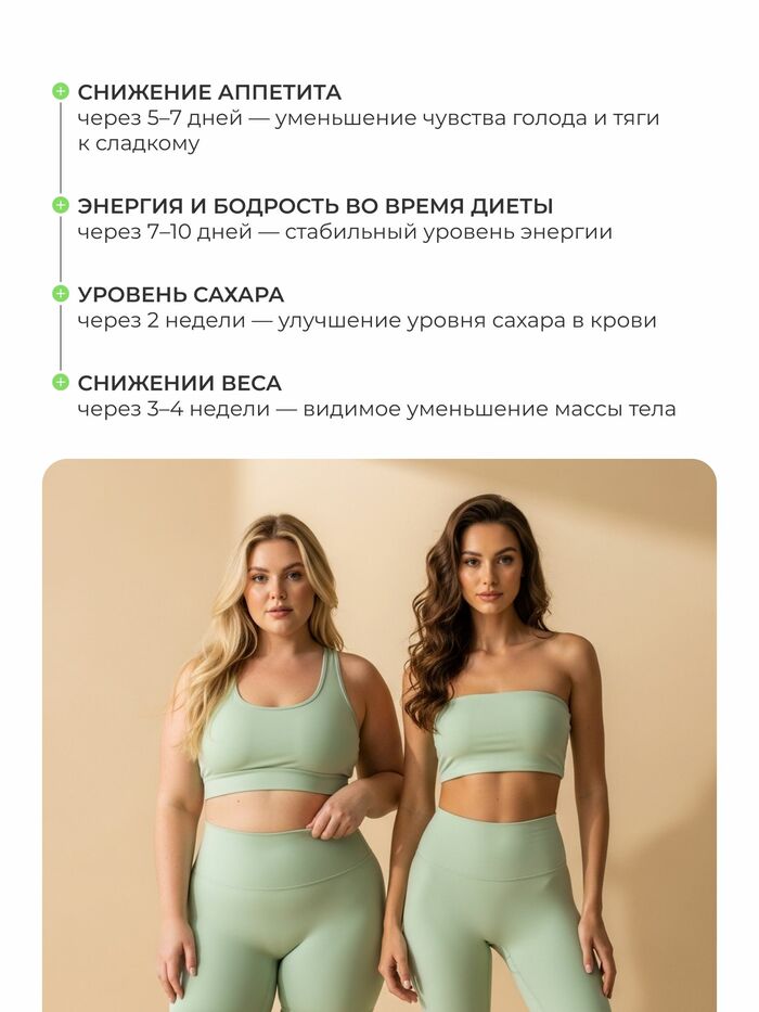 — экстракт зеленого чая активирует термогенез и способствует повышению расхода энергии, что помогает организму сжигать больше калорий даже при умеренной физической активности